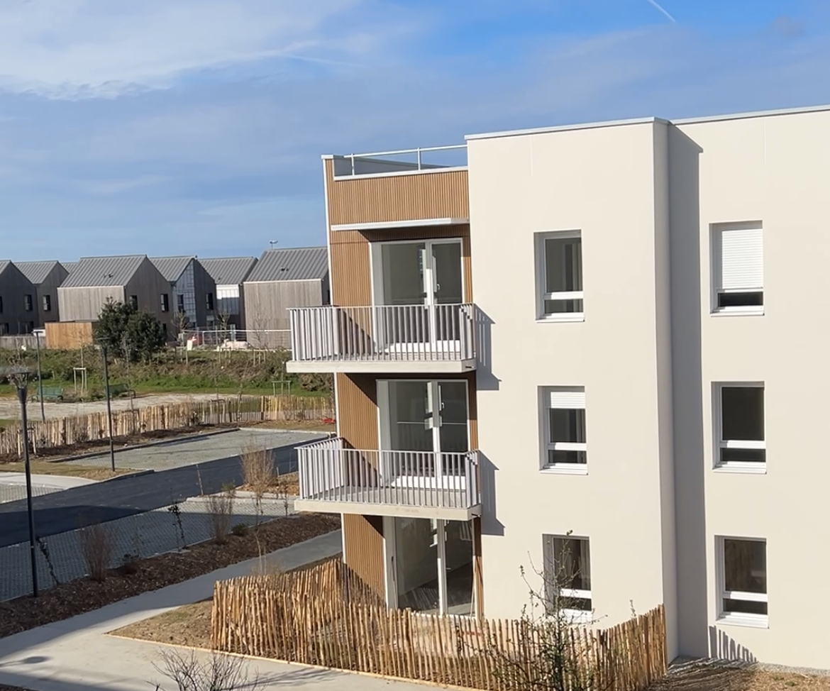 Derrière cette ambition, des choix très concrets : une construction en Bio’bric, un bardage biosourcé recyclable et une production énergétique optimisée. « Sur cette opération, pour le chauffage et l’eau chaude, on a opté pour deux pompes à chaleur installées en toiture-terrasse des bâtiments ». Un dispositif peu visible certes… mais qui fait toute la différence !